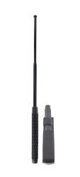 Security guards and police officers around the world are switching from bulky night sticks to this more compact, telescopic steel baton. This high quality, solid steel baton is made in TAIWAN and expands from 10 inches to 26 inches and locks into place with just a flick of the wrist. The extra reach provided can keep you a safe distance from an attacker. The rubber grip handle helps you maintain a firm grip. For easy carrying a heavy-duty nylon holster with belt loop is included.