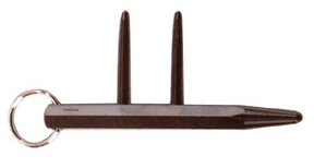 Ninja Keychain Kubotan is a kubotan with extra spikes extending from it. These spikes protrude through your fingers while you are holding it in your fist. This kubotan has a keychain ring for your keys so you will always have it with you. The ninja kubotan is made of metal.