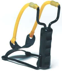 Deluxe slingshot folds down to a compact size and has over 100 yard range. This pocket sized fistfull of power is a high impact weapon. It boasts a light aluminum frame and split leather pouch. This slingshot is perfect for vermin control or for just having fun. Paintballs, steelie shot, and extra sling shot bands with ammo are also available. A sling shot is a good addition to your survival kit. Besides it's hunting attribute, a sling shot can also provide a recreational activity that can keep you from getting bored awaiting rescue during downtime.