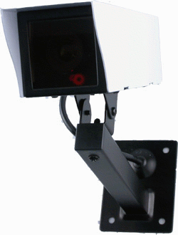 Now you can deter robbery and shoplifting without the high cost of a real security camera. This is our top of the line imitation surveillance camera. When placed within your home or business, even the most sophisticated criminals will think the premises is guarded by a high-tech surveillance system and go in search of an easier target. In fact, this is an actual video camera that has been modified to make a "dummy" camera. Every two and a half minutes the "camera" will pan back and forth for thirty seconds. A red LED light on the front flashes continuously which draws additional attention to it and increases its realism. Features durable metal housing and can be used both indoors and out. Powered by an AC adapter (included) and comes with a warning decal which states "Warning: CCTV". Measures 7 1/8 x 2 1/8 x 2 1/4" (excluding mounting bracket). For additional security see item 52387 GE Security Yard Sign w/ Stake and Window Stickers.