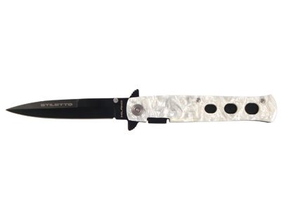 Stiletto Style Assisted Knife -White Acrylic Handle
