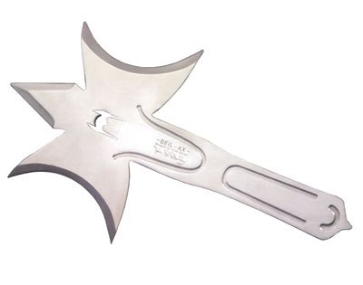 This user-friendly throwing ax is 12" overall in length and weighs just over one pound. Its design provides a successful stick even for the most novice beginners. A substantial thrower at 0.25" thick. A cordura sheath is included.