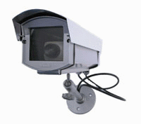 Now you can deter robbery, theft, and vandalism without the high cost of a real outdoor security camera. When placed outside your home or business, even the most sophisticated criminals will think the premises is guarded by a high-tech surveillance system and go in search of an easier target. In fact, this is an actual surveillance camera in outdoor housing that has been modified into a "dummy" or fake security camera. This unit is the same has our model DCOH which does not contain a flashing light. We have added a flashing LED light to this model because many of our customers wanted to be sure that the camera could be seen at night. Great security for parking lots or near the front door of a home, store, or business. Features authentic video cable, weather proof aluminum housing, and fully adjustable metal mounting bracket. Installs quickly and easily using the included stainless steel screws. Measures 12" long (rain shield extends 2 more inches) x 4" wide x 4 1/2" tall (excluding mounting bracket). Operates on 2 "AA" batteries (not included). For additional security see item 52387 GE Security Yard Sign w/ Stake and Window Stickers .