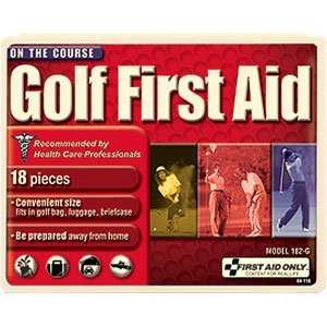 UOM: EA Size: 4.75" X 3.75" X 1/2" Properties: 18 piece kit One of our most popular kits, and a must for every golf bag Includes sunscreen, sting relief, moleskin for blisters and more Eraser and anti-anxiety medication not included Kit Includes: (6) 3/4" X 3" Adhesive plastic bandages (2) Alcohol cleansing pads (2) Antiseptic cleansing wipes (sting free) (1) Antibiotic ointment pack (2) Insect sting relief pads (1) Sunscreen packet (1) Lip ointment (1) 2" X 2" Moleskin square (1) First aid guide