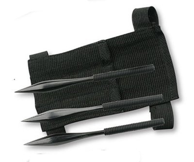 These throwing knives are great for practicing your throwing technique. The sport of throwing knives is becoming more and more popular as people realize the fun and excitement of being able to land a knife exactly where you want it. These inexpensive throwing knives are ideal for beginners and those just getting interested in the sport. They're sturdy enough and balanced enough to practice with. While perfecting your throwing technique, you will be able to make these knives stick exactly where you throw them. All sets of throwing knives and the single throwing knife come with a case that you can keep them in. Carry on your belt or in your backpack. When camping, bust them out and practice learning your new skill. Find a secure area at the next BBQ and have fun practicing with your friends. Throwing Dots 3 pc Set 6 1/4" overall. Black 440 stainless steel. Rubber Wrapped handle with nylon pouch and armband.