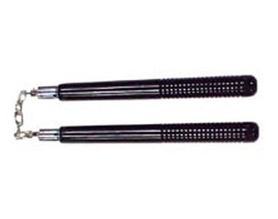 Nunchuck with grooves on handles. Ball bearing swivel chain. Comes in black.
