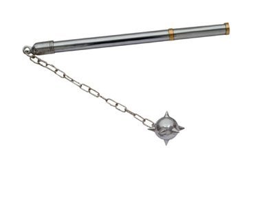 Battle Maces were used in the middle ages by infantry soldiers. The spiked ball was swung with great momentum to bludgeon their enemies. The shaft of each mace is 18" long and the chain is 13" long.