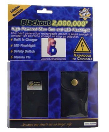 The Blackout 2,000,000* is small enough to fit inside a pack of cigarettes yet powerful enough to immobilize an attacker. Its rubberized shell makes it easy to handle and grip. The unit is rechargeable (rechargeable batteries are included) with a built-in plug for easy charging. There are no cords to keep up with; simply plug into a standard wall outlet. It also has a built-in bright LED flashlight for a convenient source of light. The unit comes with a safety switch to prevent accidental discharge and an optional disable pin to prevent the stun gun from being used on the victim in case the attacker takes the device. A stylish, durable holster is included for easy carrying. The SF2000RB comes with a lifetime limited warranty.