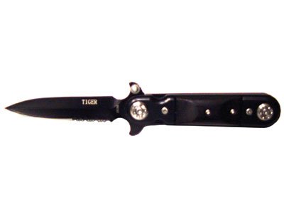 Black Assisted Opening Knife - Black Wood Insert Handle