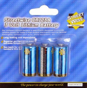 Three volt lithium (CR123A) battery for Small Fry Stun Gun. Please note that price is per battery and each Small Fry Stun Gun requires three batteries.