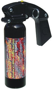 Approximately 38 one second bursts. Effective range up to 20 feet. Wildfire 18% pepper spray is hot, hot, hot! 18% pepper spray and 3 million scoville heat units. Has one of the purest grade oleoresin capsicum formulas in a defensive spray. Wildfire comes in 5 sizes: 1/2 ounce, 1.5 ounce, 4 ounce, 9 ounce, and 1 pound. The two smaller pepper sprays come with an injection molded key-chain holster with belt-clip and safety lock. All have safety devices to prevent accidental discharge. All Wildfire OC pepper sprays have a non toxic vegetable dye to aid in assailant identification.