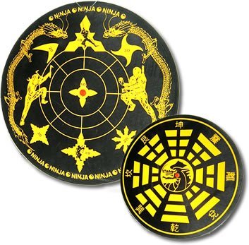 This ninja target board has two sides to it. You practice on one side and then flip it around to hit the target on the other. Both sides have bullseyes for that perfect throw. Start out close to the board if you are just learning to throw. As you gain more and more experience, you can move further back from the practice board. The ninja target board is durable and will last a long time taking many hits. Hammer a nail and hang it up. You can practice your throwing technique pretty much anywhere you have a bit of room such as camping trips, BBQs, or just hanging out. Not weatherproof. Bring inside after use so it doesn't get rained on. See Also